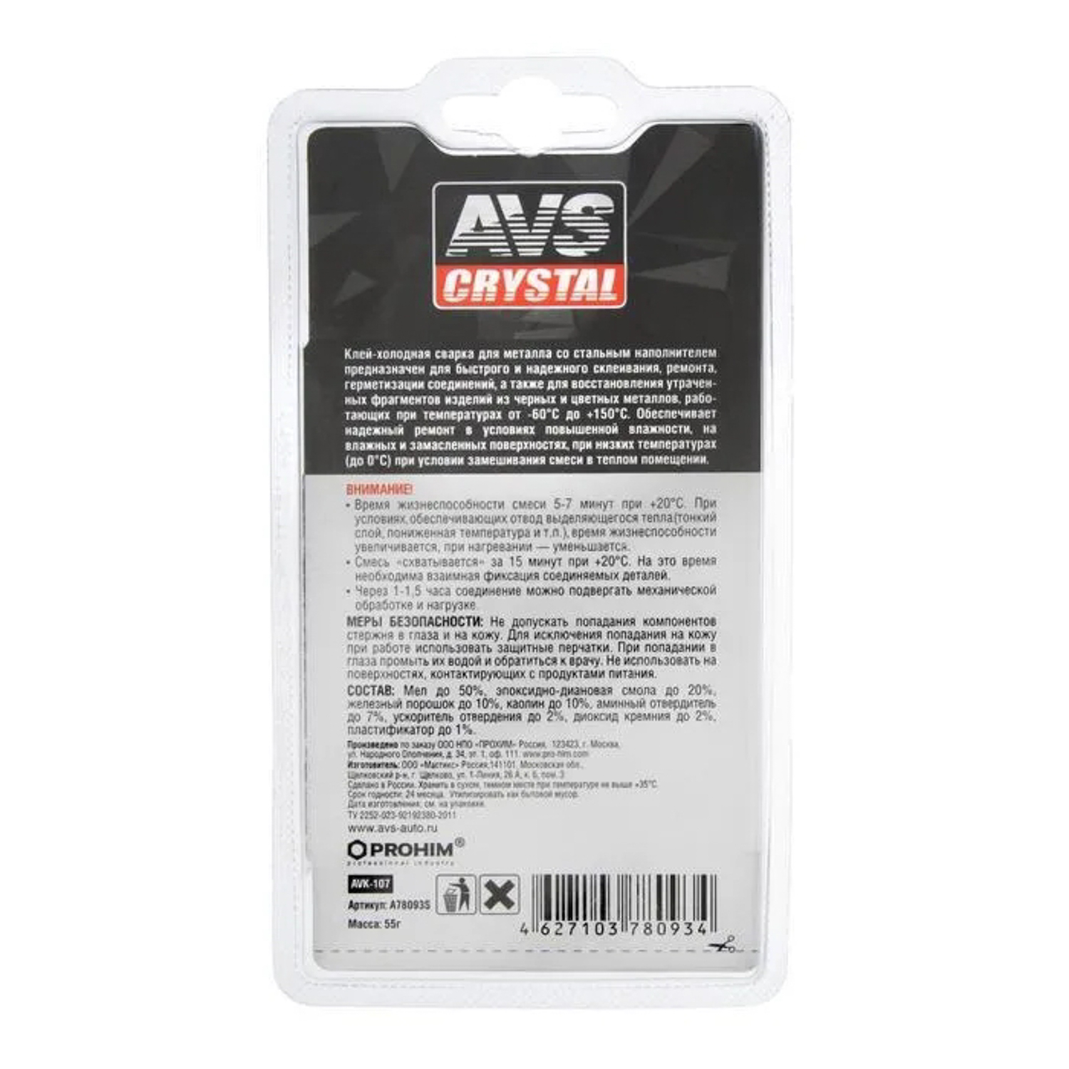 яяяКлей холодная сварка для металла AVS AVK-107, 55 г 1668172