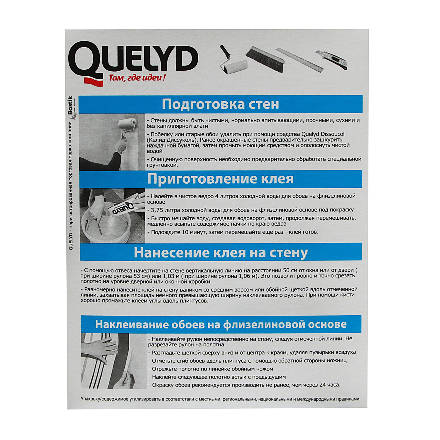 Quelyd Спец-Флизелин - сухой обойный клей на основе натурального картофельного крахмала с усиленной формулой для всех флизелиновых обоев и виниловых обоев на флизелиновой основе.