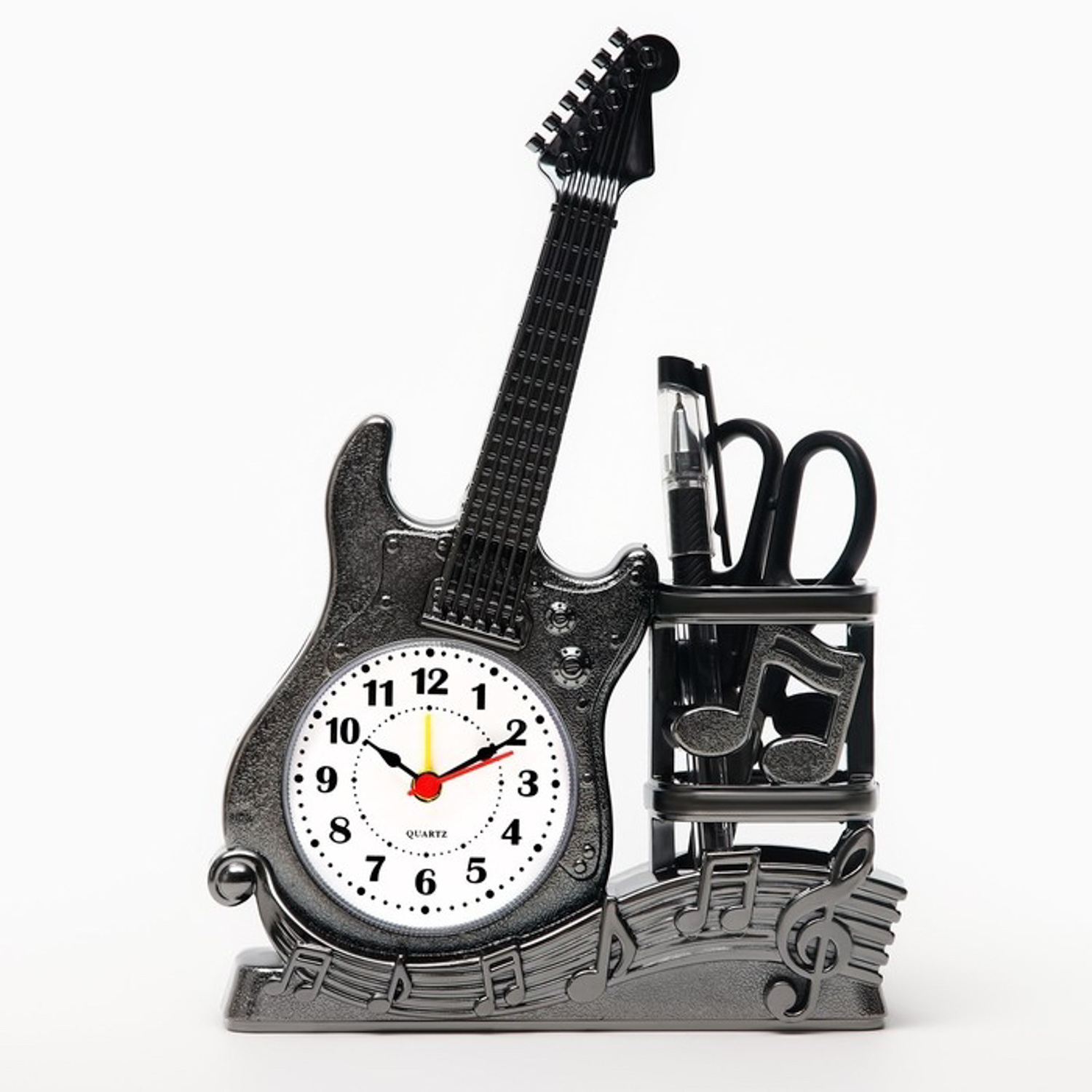 Будильник "Гитара", дискретный ход, с карандашницей, 1АА, 15.5 х 22 х 5.5 см, серебро 9541328