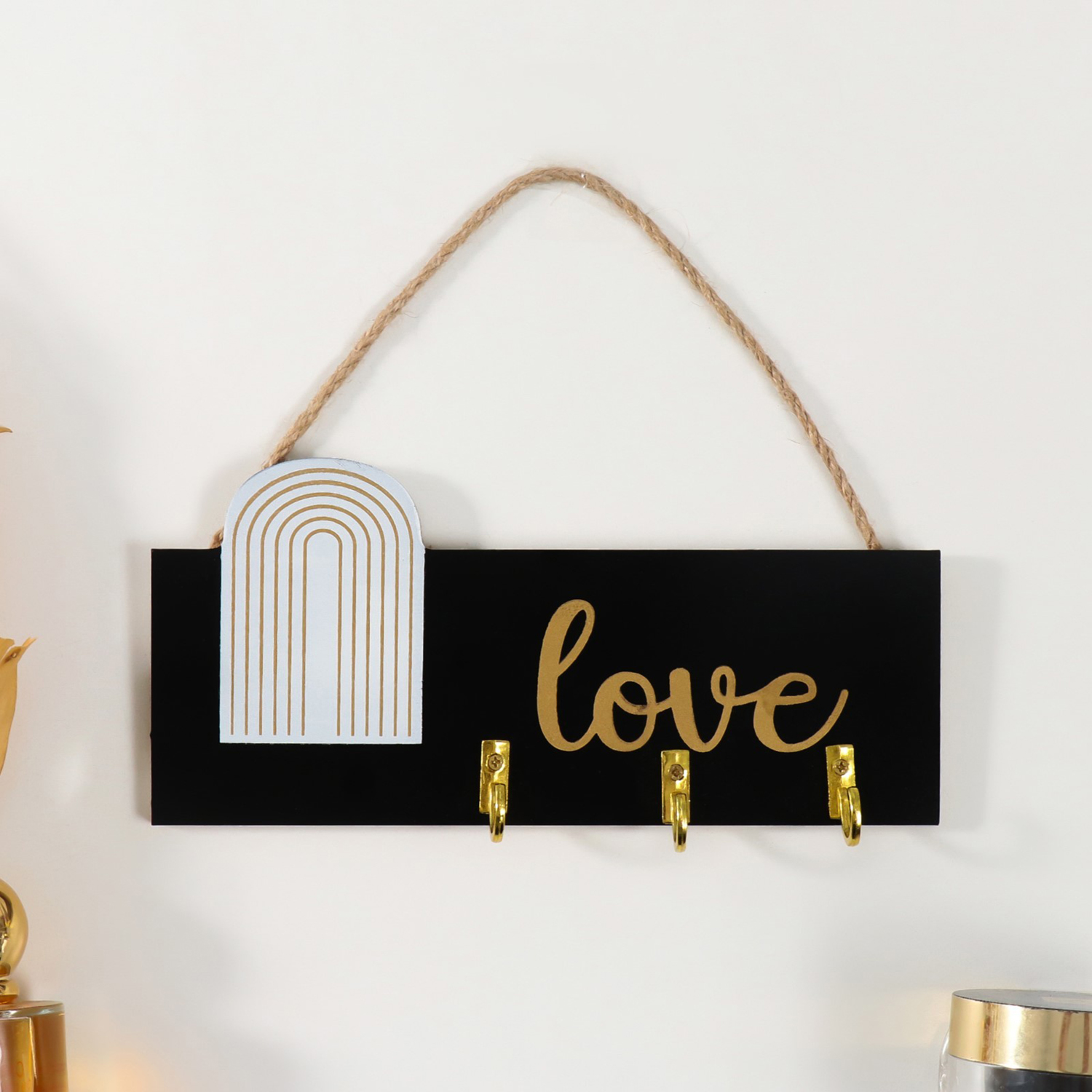 Крючки декоративные дерево "Любовь. Абстракция. Радуга" чёрная с золотом 20х9,3 см   10498998