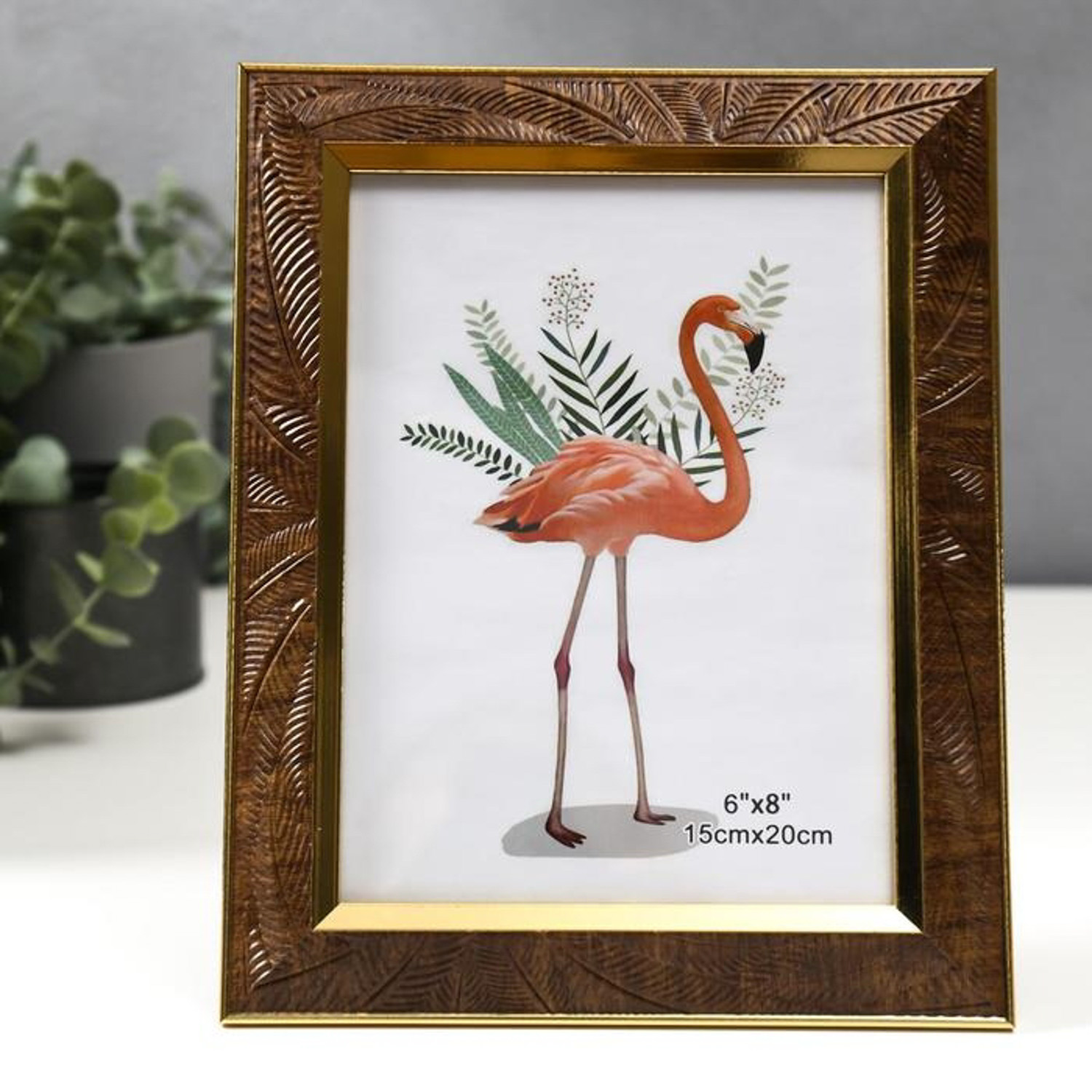 Фоторамка пластик 15х20 см "Листья на шоколаде, золотая двойная рамка" 24,7х19,8 см  5375934