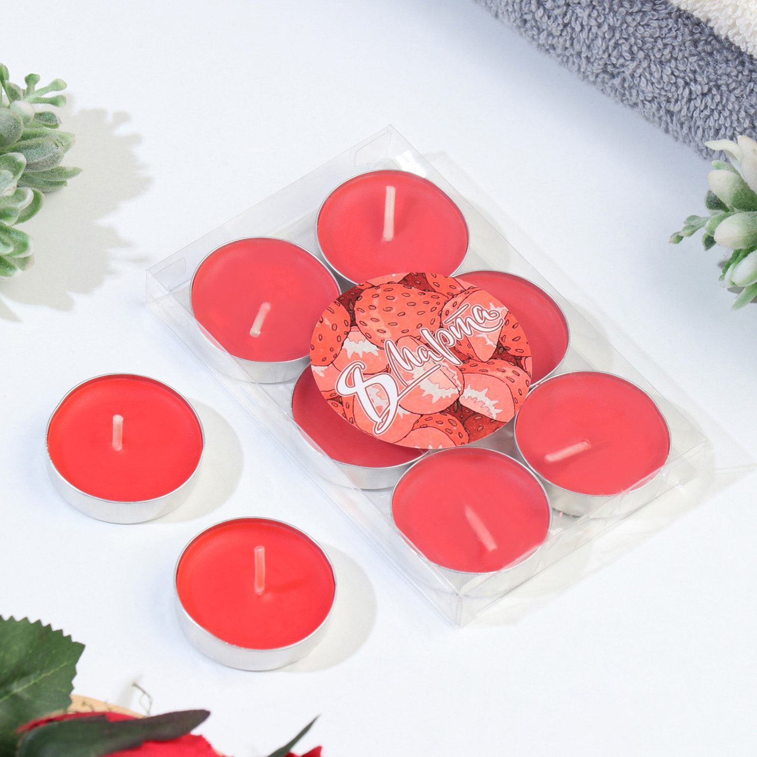 Набор свечей чайных ароматических, 6 шт, клубника 9814701