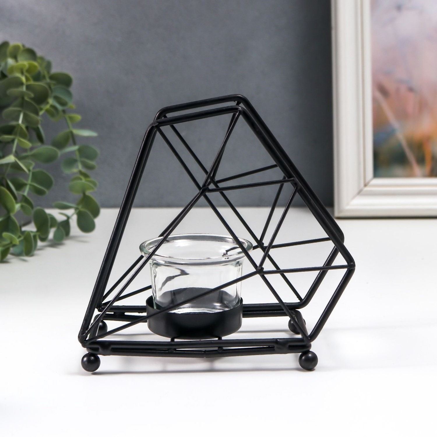 Подсвечник металл, стекло на 1 свечу "Лофт. Трапеция" чёрный 13х8х15 см 7459643