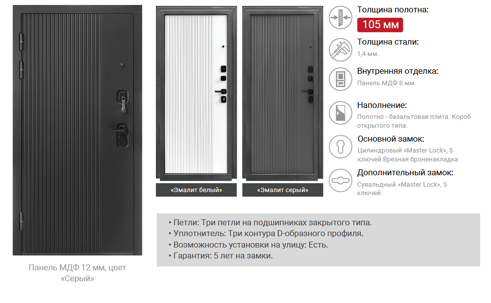 Дверное полотно, дверная коробка, замок основной, замок дополнительный, петли - 3 шт., ручки, наклад
