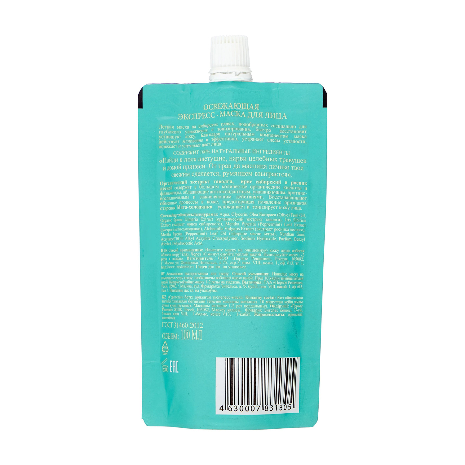 яяяПР Банька Агафьи.Маска-экспресс д/лица Освежающая 100 мл (дой-пак)