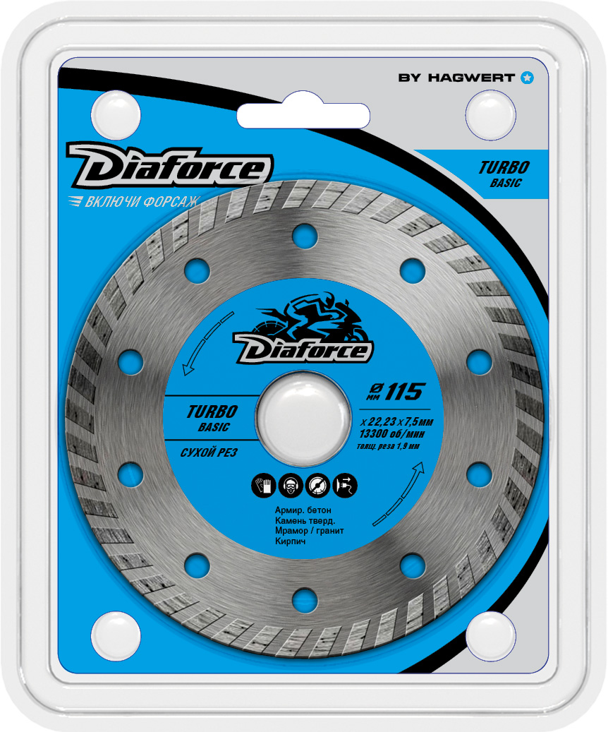 Диск алмазный 115*22,23*1,9мм по железобетону ТУРБО сух.рез арт.511115 TurboBasic Diaforce *1/10/100