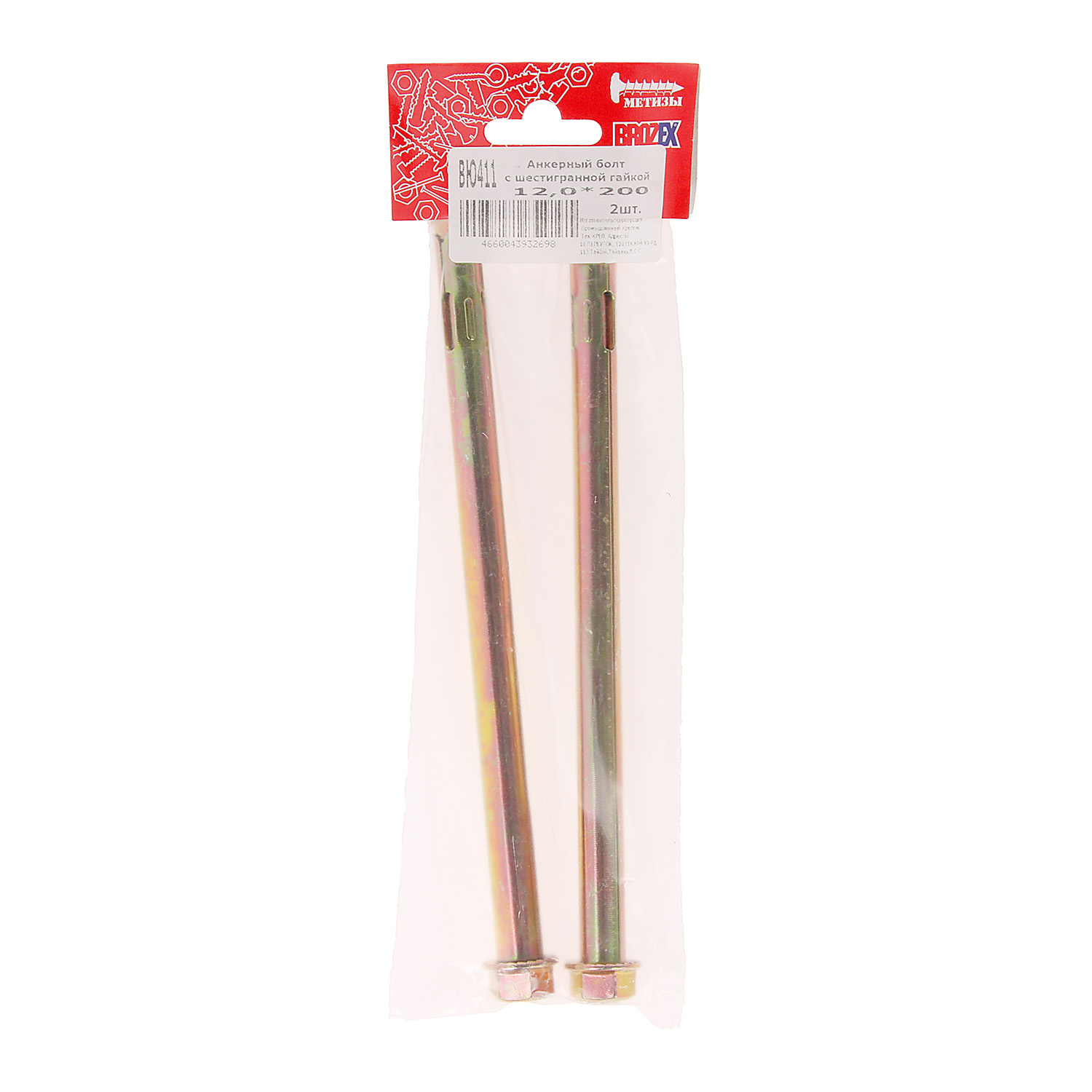 Анкер с гайкой 12х200 (2шт) пакет BROZEX *10/100