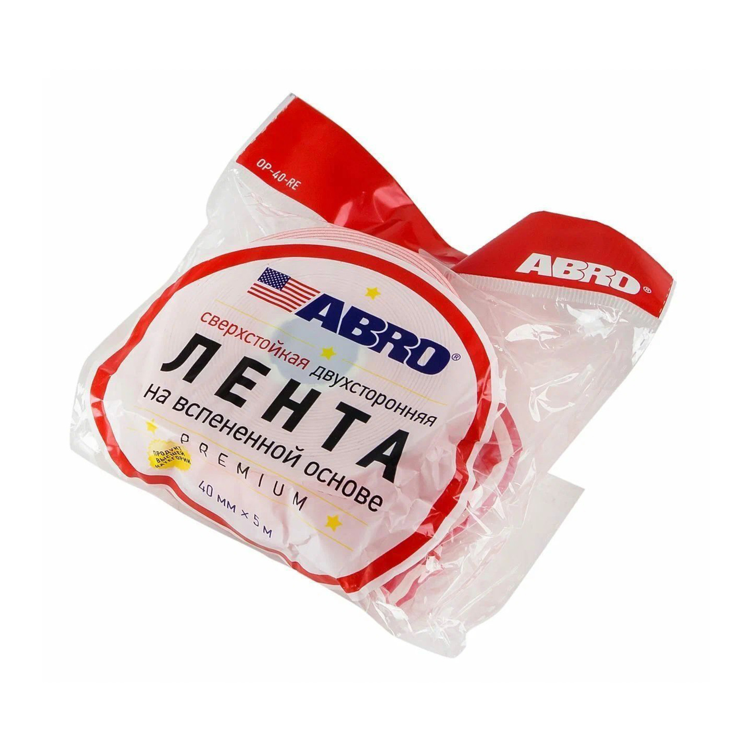 Лента клейкая двусторонняя на вспененной основе Сверхстойкая Белая 40мм х5м OP-40-R "ABRO" *1/1075