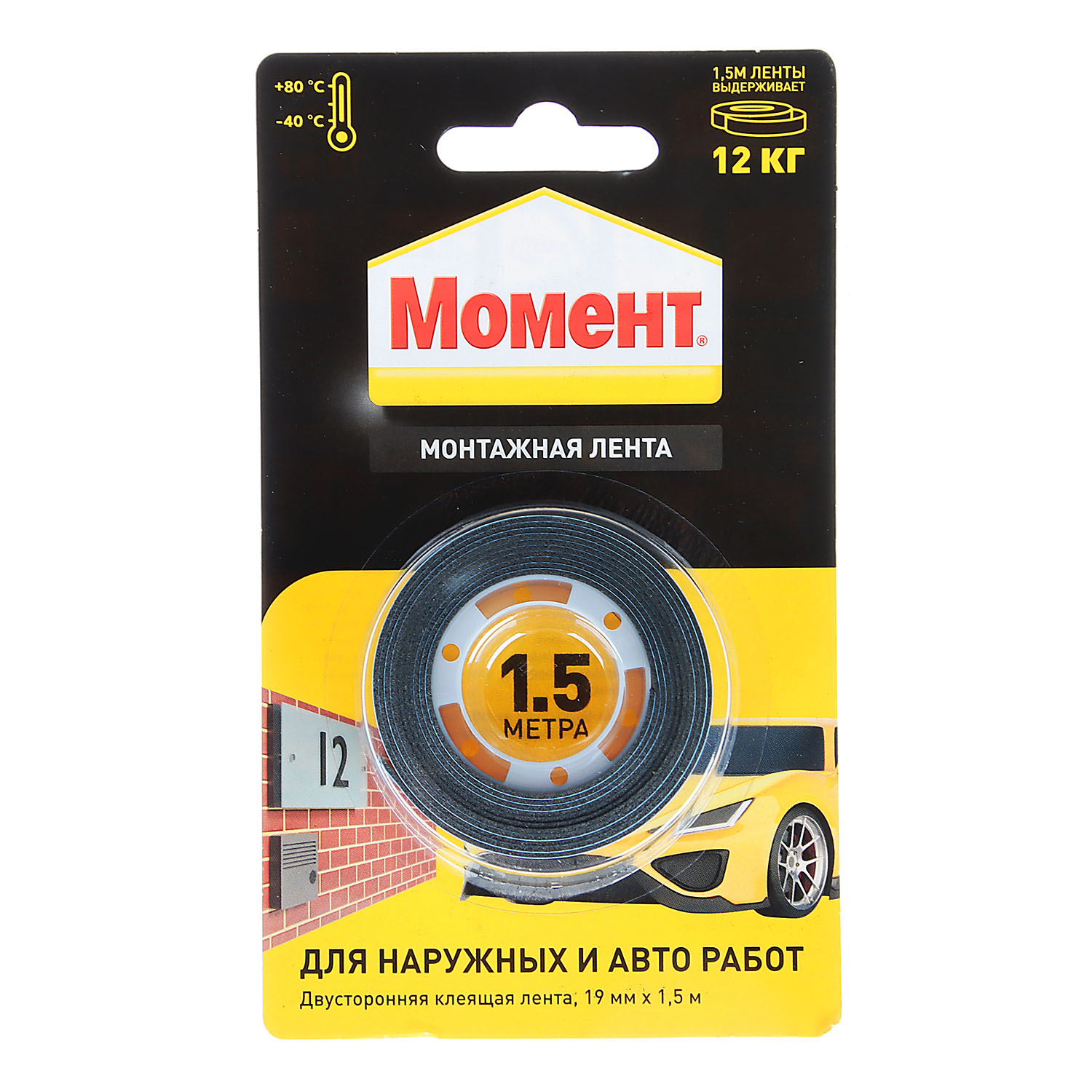 Лента клейкая двусторонняя 19ммх1,5м Черная 3002143 Момент (Хенкель)  *1/10