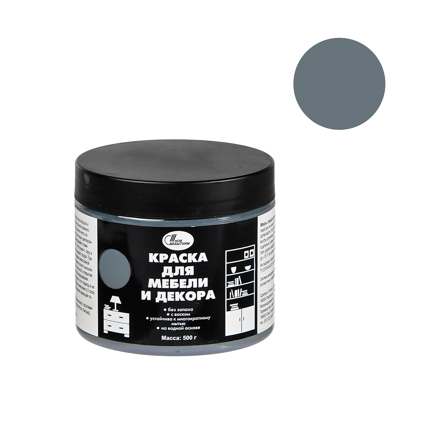 Краска акриловая для мебели и декора Графитовый 0,5 кг Новбытхим *1/6