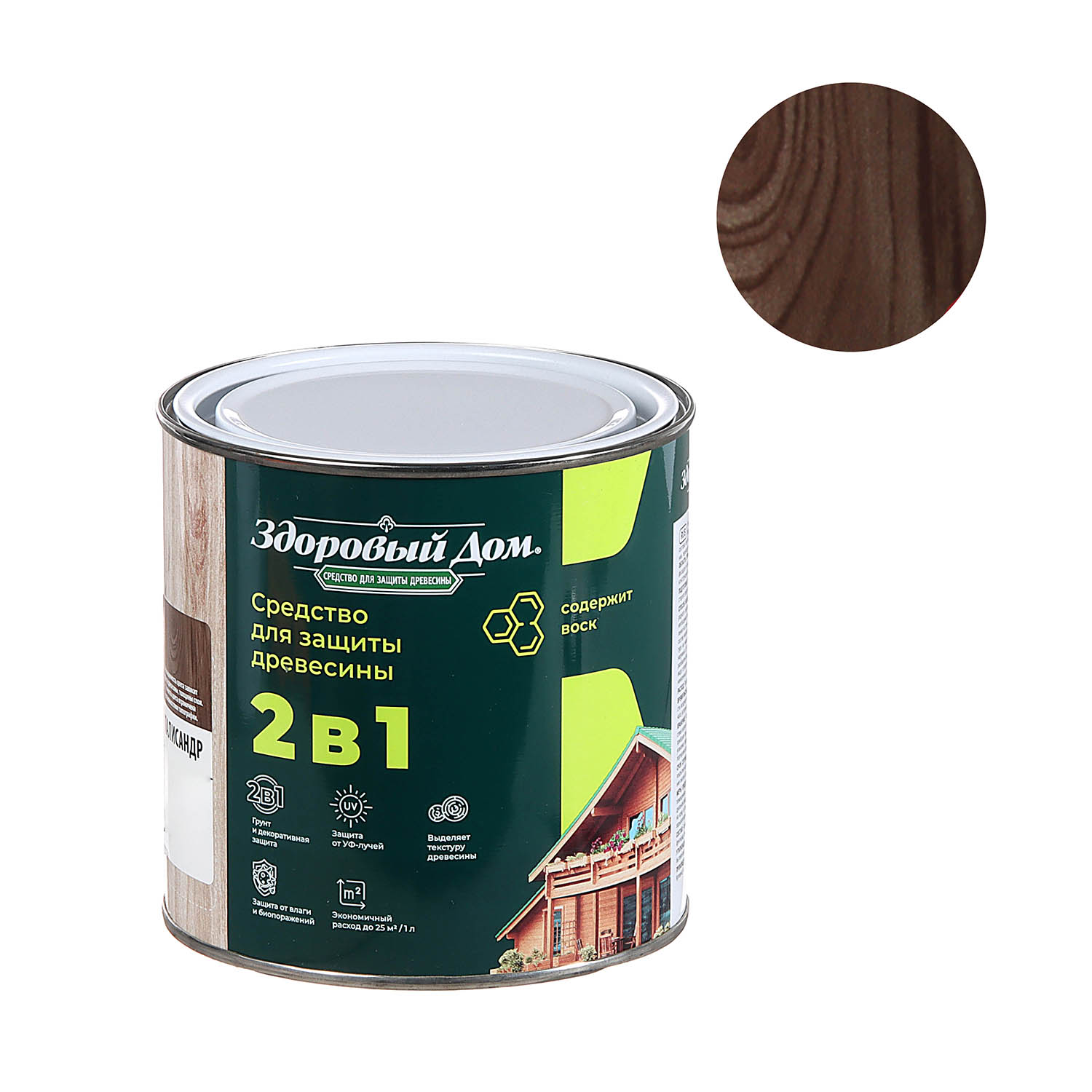 Деревозащитное средство Здоровый дом 2 в 1 палисандр 0.8 л представляет собой высокоэффективное покрытие для декоративной отделки древесины и защиты поверхностей на срок до 8 лет. Формула 2 в 1 позволяет наносить состав без предварительного использования грунта.