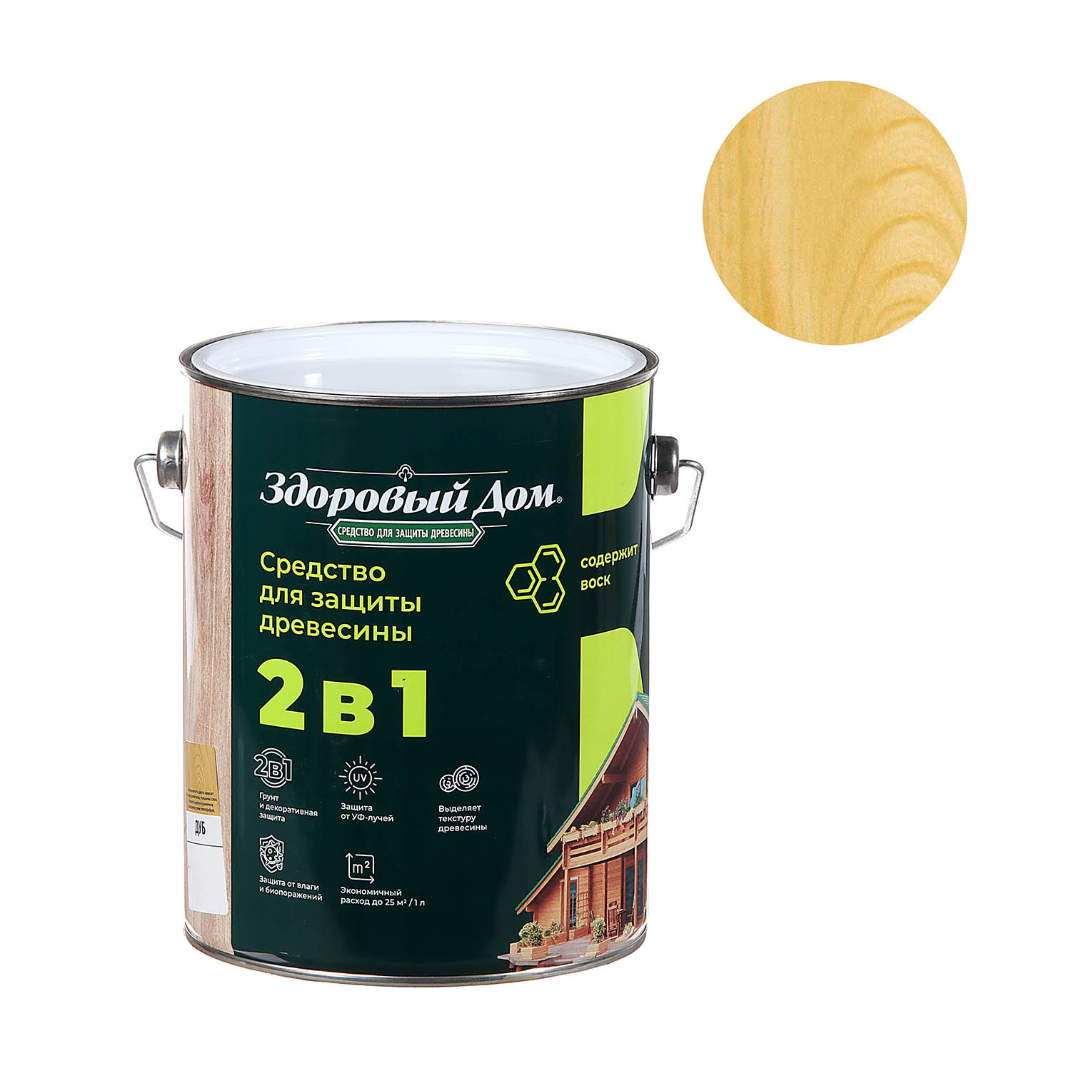 Защитно-декоративное покрытие 2.7 л для древесины Здоровый Дом 2 в 1, дуб