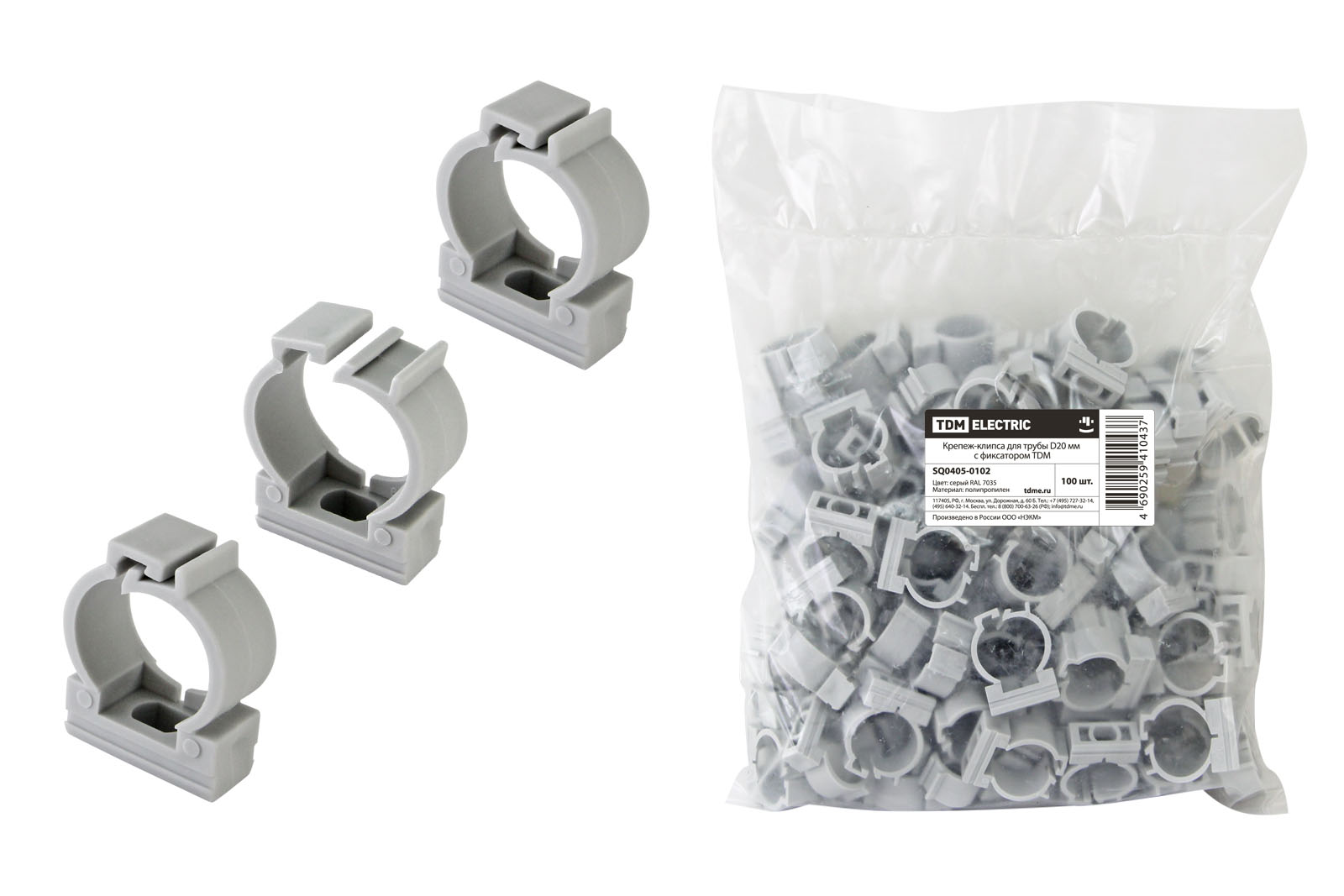 Крепеж-клипса d20мм (для трубы пвх гофро с зонд) с фиксатором упак.100шт TDM SQ0405-0102 *1/10