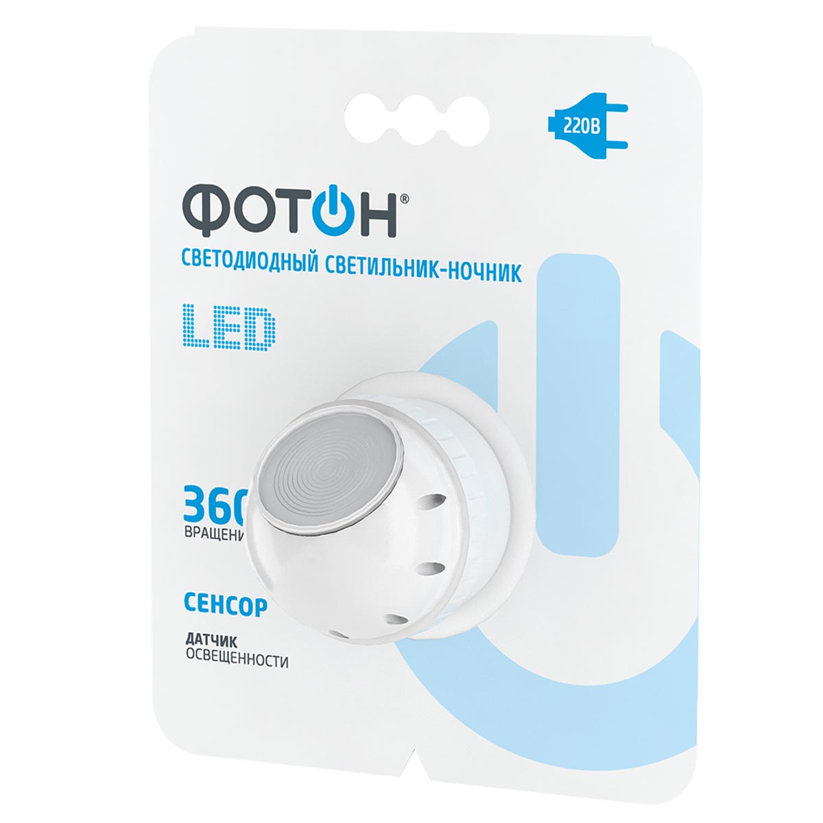 Компактные сетевые светильникиночники «ФОТОН» работают от сети 220В. Это простое и функциональное решение для мягкой подсветки помещения в тёмное время суток. Уютный тёплый свет создают светодиоды с цветовой температурой 2700К. Мягкая подсветка не слепит глаза благодаря использованию современных рассеивающих материалов. Направленное освещение, вращение на 360. Датчик освещённости.