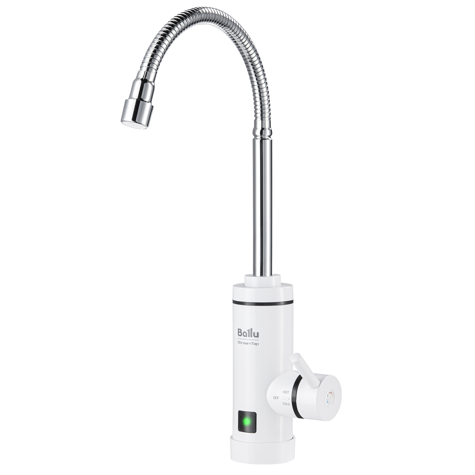 Электрический проточный водонагреватель Ballu StreamTap обеспечит мгновенный нагрев воды в квартире, на даче или офисе в течение всего года, исключая зависимость от сезонно-профилактических и ремонтных работ систем теплоснабжения. Компактная модель предназначена для установки вместо обычного смесителя. Прибор прост в монтаже. Чтобы воспользоваться горячей водой уже в день покупки прибора, достаточно заменить привычный кран на водонагреватель и подключить его к розетке.