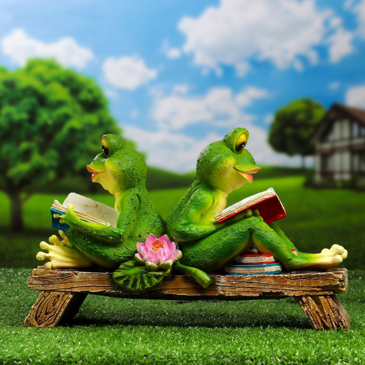Садовая фигура "Две лягушки с книжками на лавке" 10х33х21см 5155095