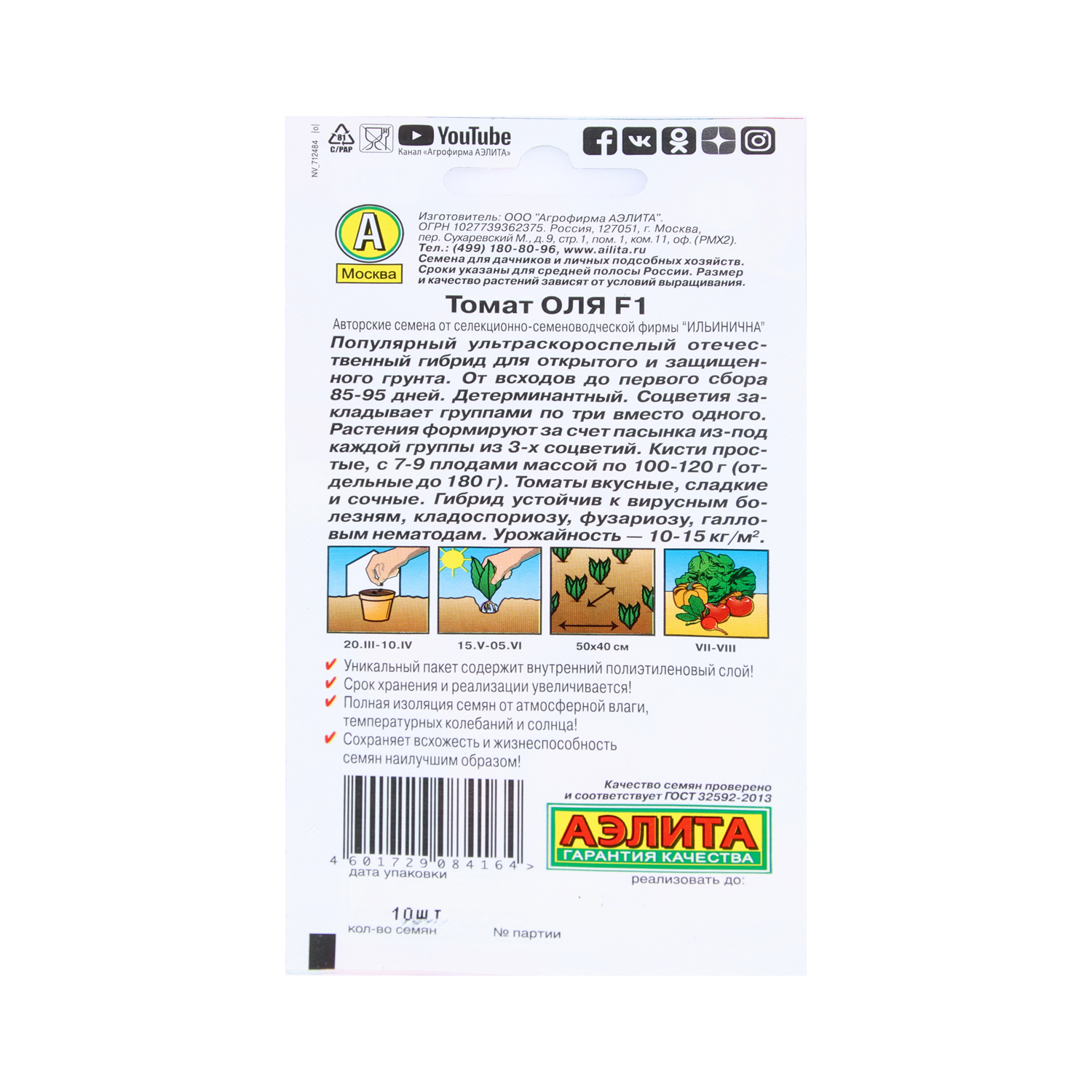 Семена Томат Оля F1 10шт Аэлита цв *10/500