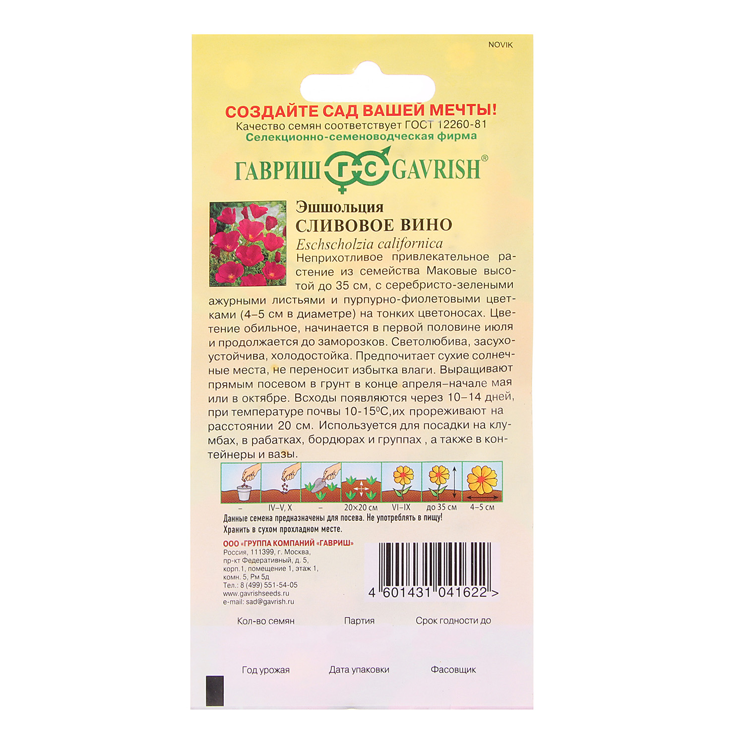 Семена Эшшольция Сливовое вино 0,2гр Гавриш *10/200