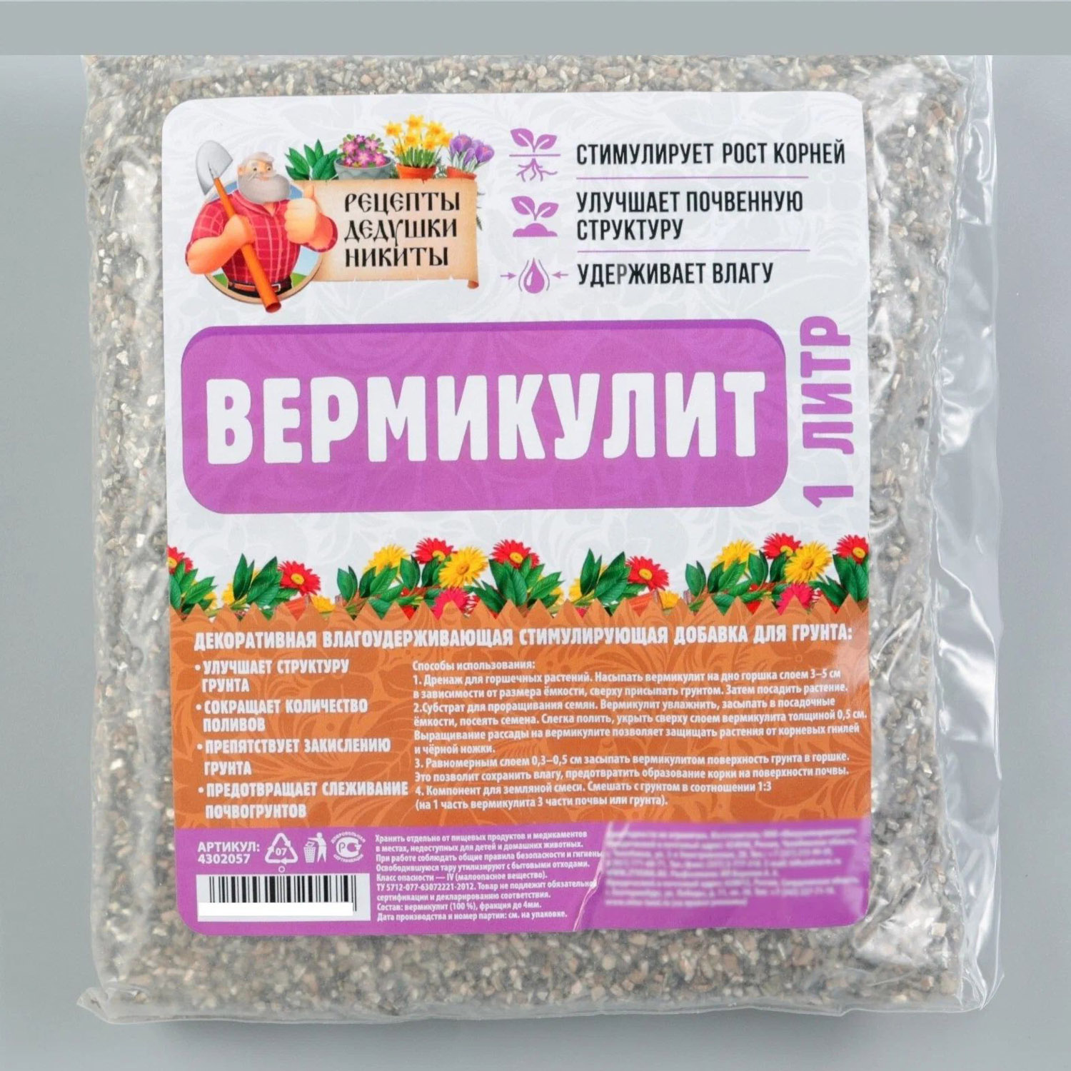 яяяВермикулит фр 0-4 мм 1л "Рецепты Дедушки Никиты"
