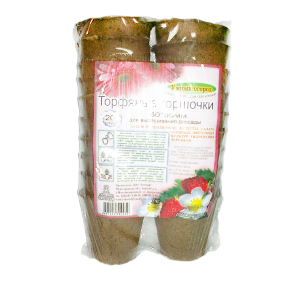 Горшочки торфяные 6х6 см Умный огород, 100 мл, 20 шт.