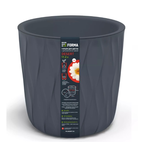 Кашпо пластм. "Desert" 11.2л d верха 265мм h258мм со вставкой Серыйй 86705 *1/3