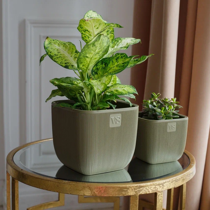 Кашпо пластм. "Фабио" 1,95л 140х140мм h140мм со вставкой Оливка AMF-1,95-14 ("VipSet") *1/8