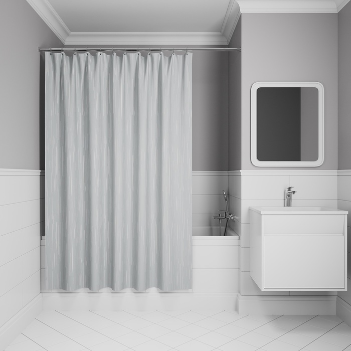 Штора  для ванной "IDDIS" п/эстер 200*240см Тонкий узор, светло-серый BD02P24i11 *1/20