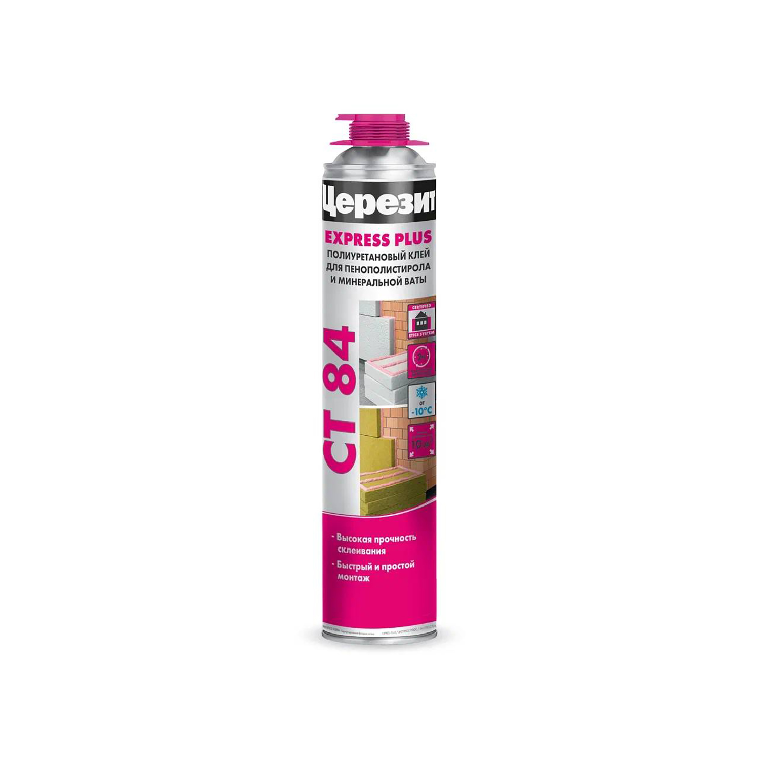 Полиуретановый клей Церезит CT 84 Express PLUS предназначен для крепления плит из суспензионного (EPS) и экструзионного (XPS) пенополистирола и минераловатных плит при наружном утеплении фасадов вновь возводимых зданий, а также при реновации существующих систем теплоизоляции - на зданиях пониженного уровня ответственности и малоэтажных жилых домах высотой не более трех этажей.