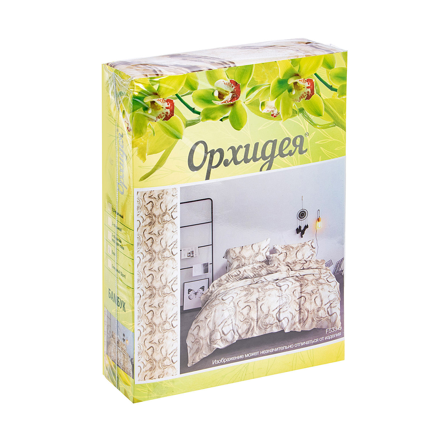 Постельное белье евро бамбук Орхидея F533-6, наволочки 70*70см - 2шт *1/4