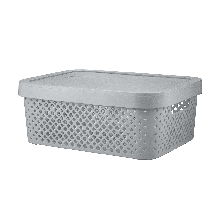 Корзина для хранения пластм. "Stockholm" 360х275х139мм с Крышкой Серый шторм PT500501025 *1/7