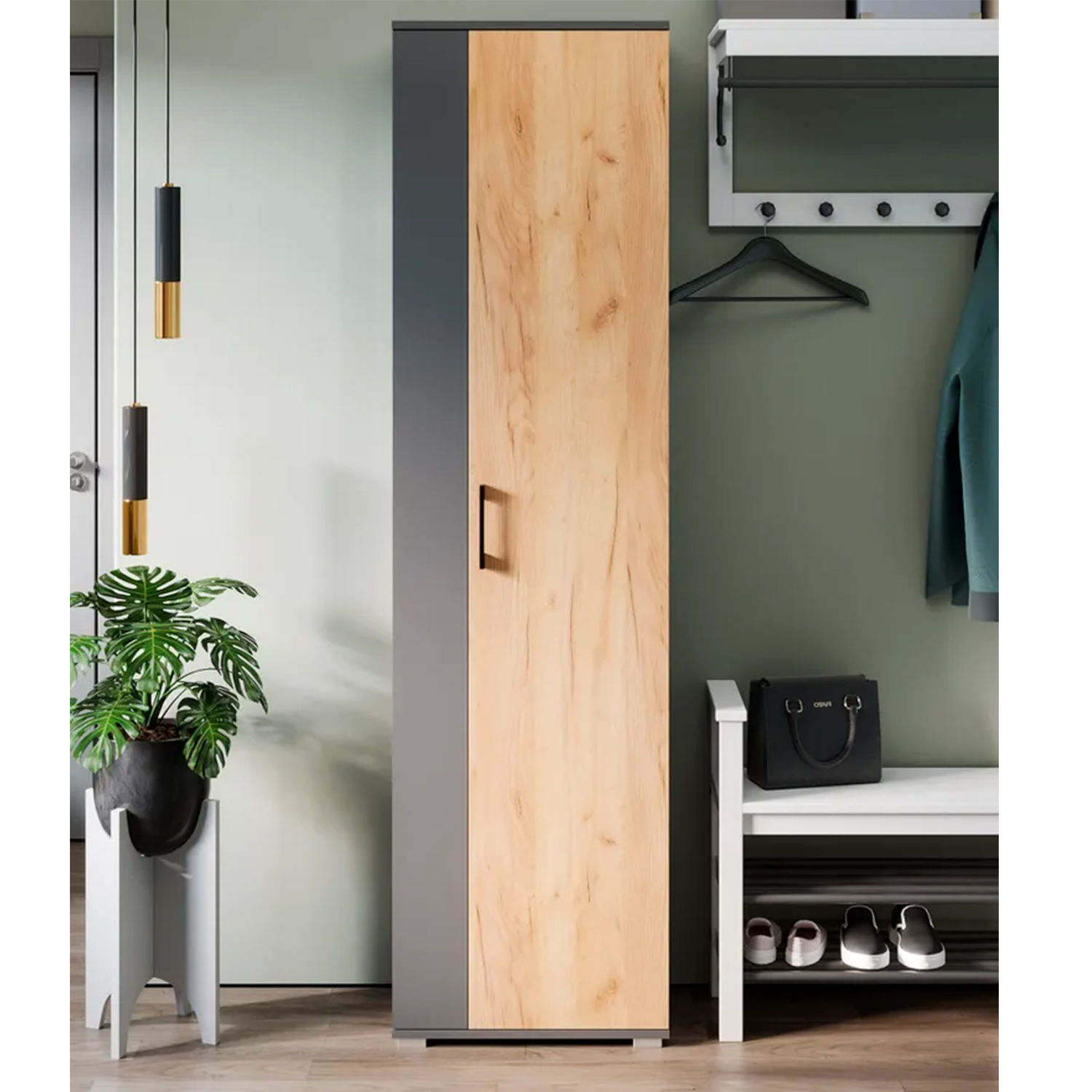 Набор мебели для прихожей ЭРИКА шкаф для одежды Тип 2 дуб графит серый/крафт золотой *1