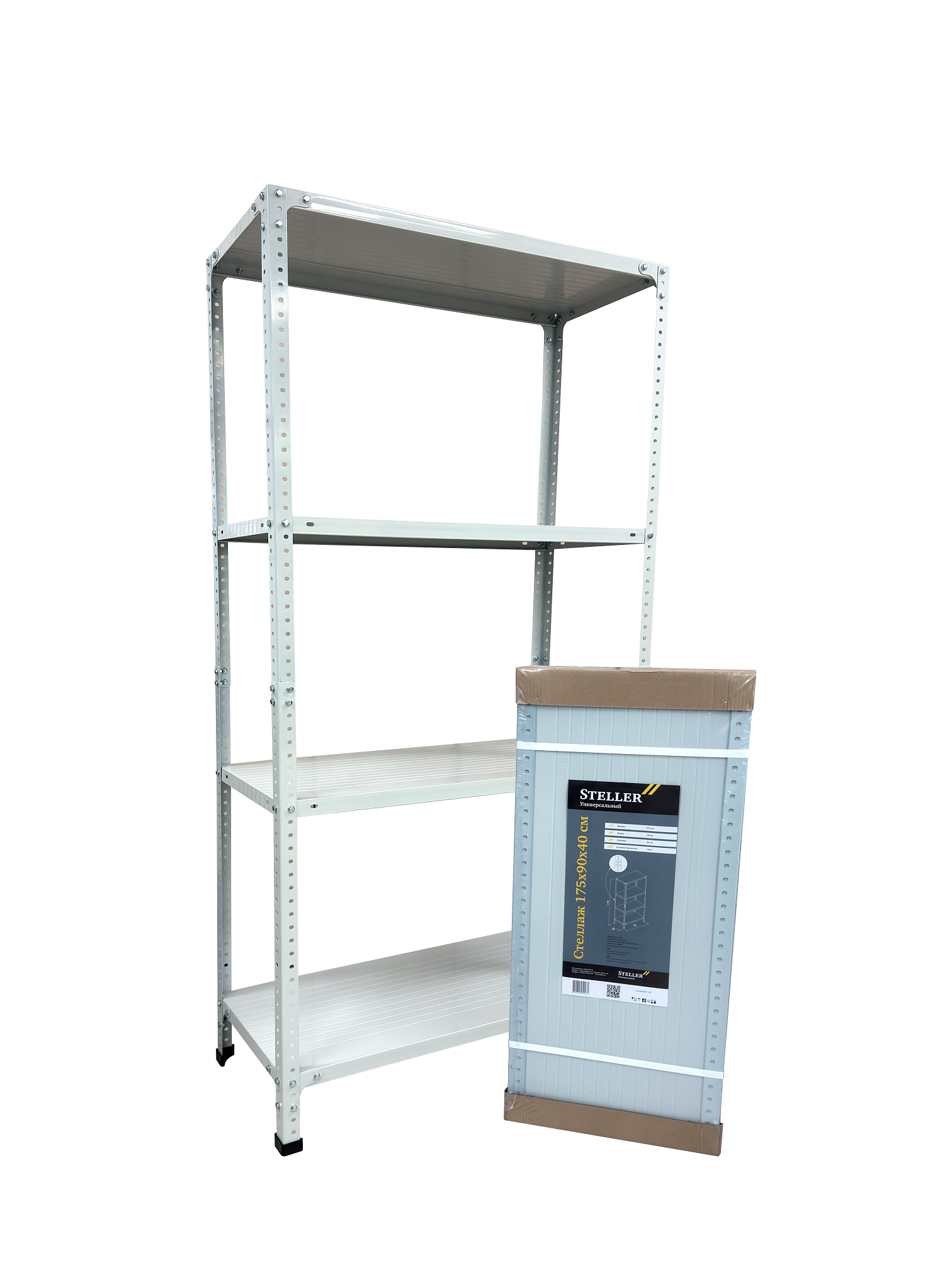 Стеллаж металл. "Steller" выс.1,75м, шир.0,9м, гл.0,4м, 4полки (мах нагр.на полку 100кг), Серый *1