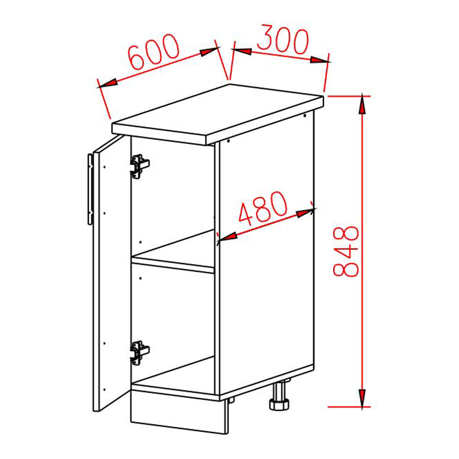 Шкаф напольный 300х850х600 мм BROZEX-WOOD Lux, с дверцей