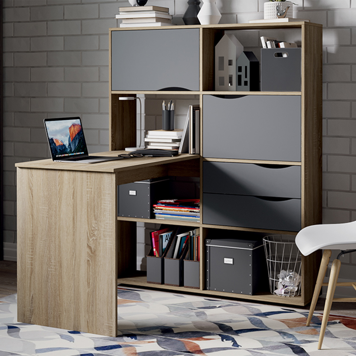 Стол письменный тип 7 1432*1148*1100мм Дуб сонома/Графит серый*1