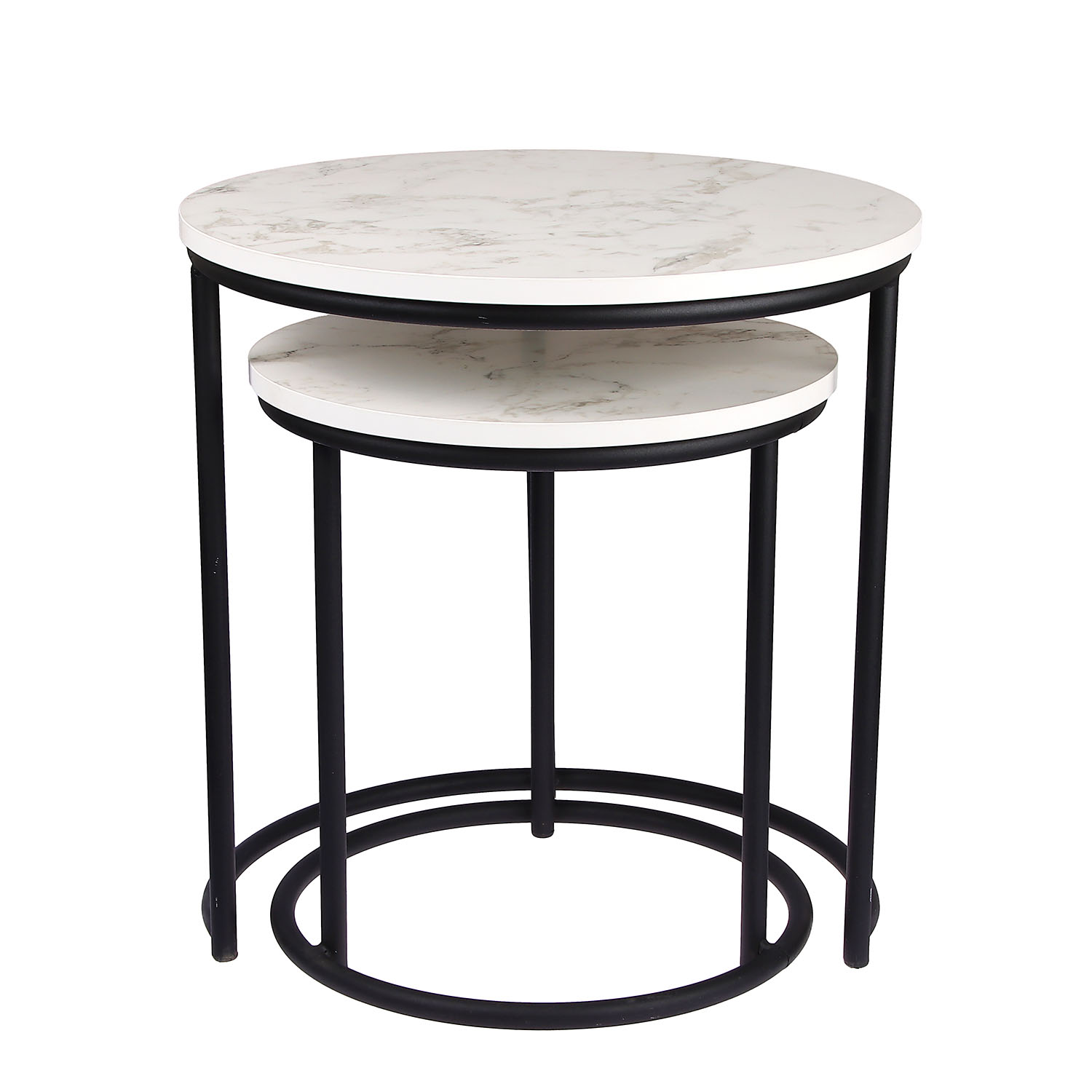 Стол журнальный МАТРЕШКА комплект столешниц 2 шт.ЛДСП Белый мрамор+Подстолье труба КРУГЛАЯ ЧЕРНАЯ*1