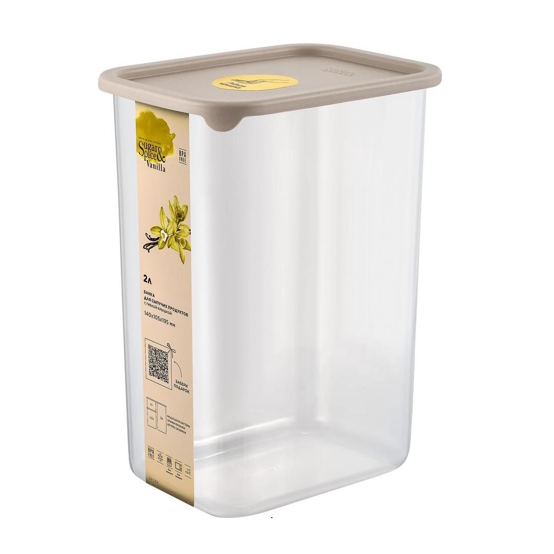 Банка для продуктов пластм. "Vanilla" 2л 140x105x195мм Латте SE168310005 "Sugar&Spice" *1/8