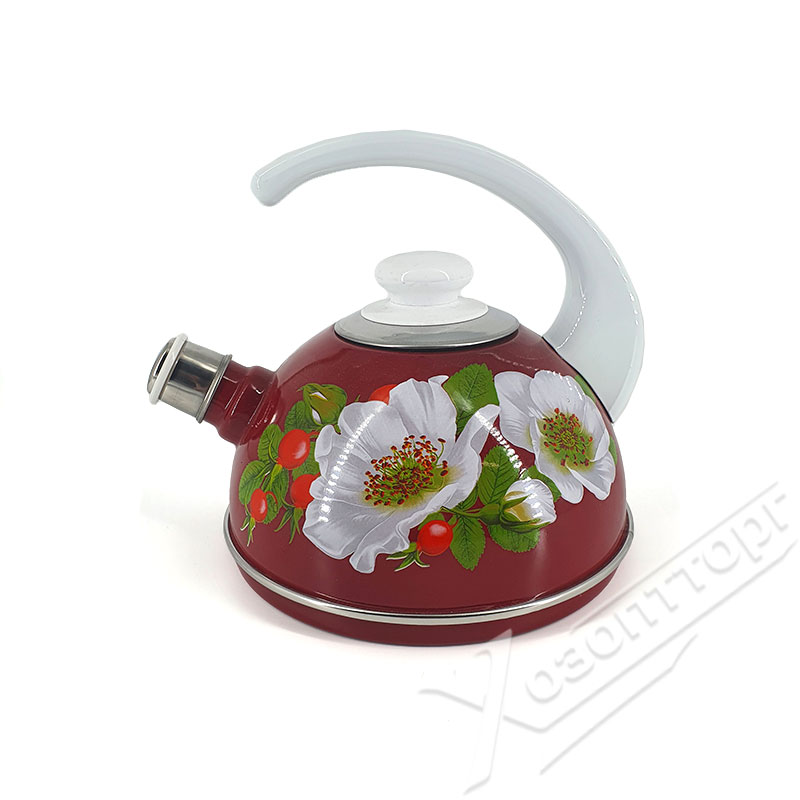Чайник эмалированный со свистком 2,5л декор "Маричка" Бордовый T04/25/01/33/H03 *1/4