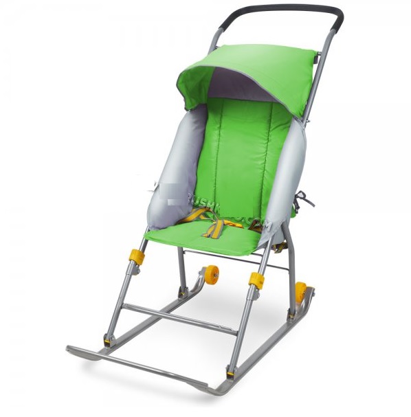 Санки-коляска детские "Умка 1 комфорт" выс.сид.+коз.,плоск.полозья с колес. Зелен. У1К (Ижевск)*1/2