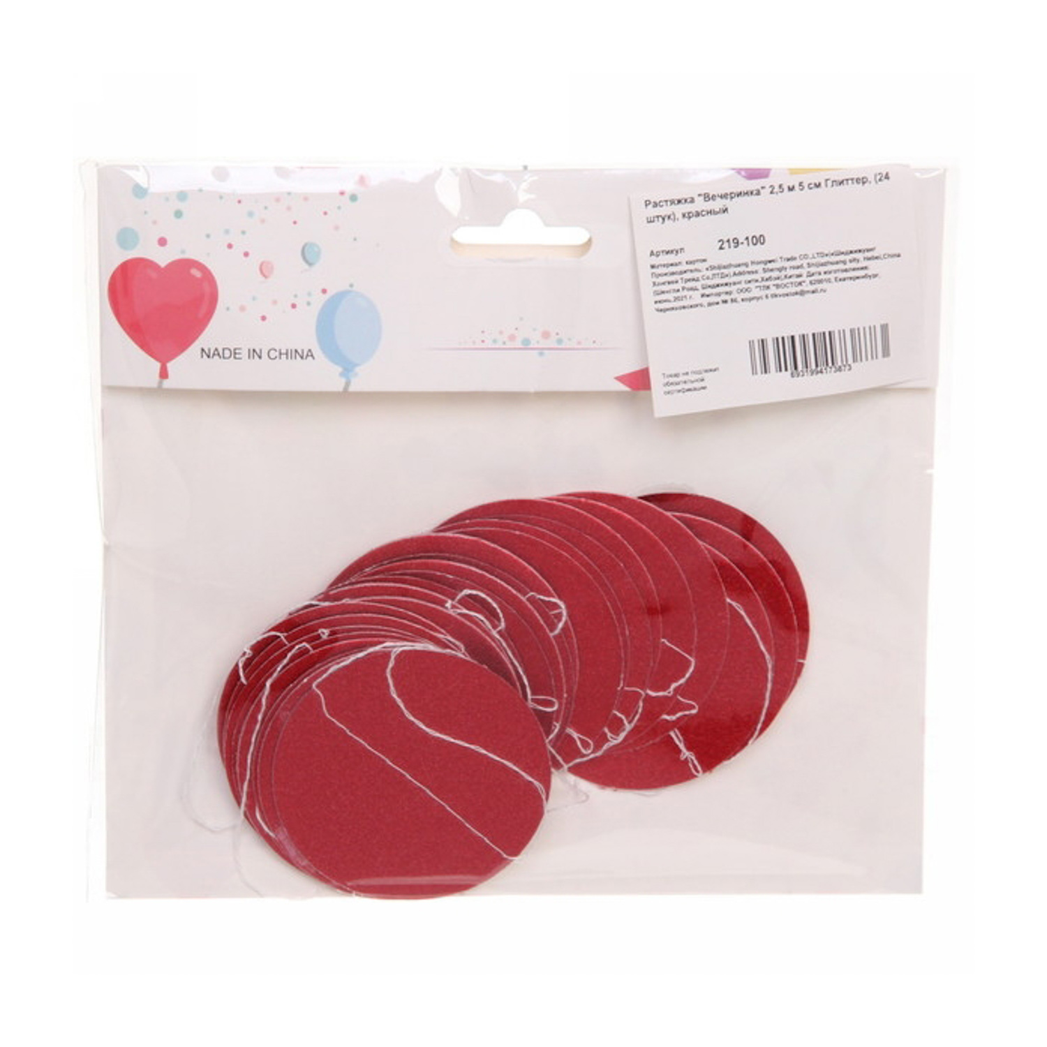 Растяжка "Вечеринка" 2,5 м 5 см Глиттер, (24 штук), красный