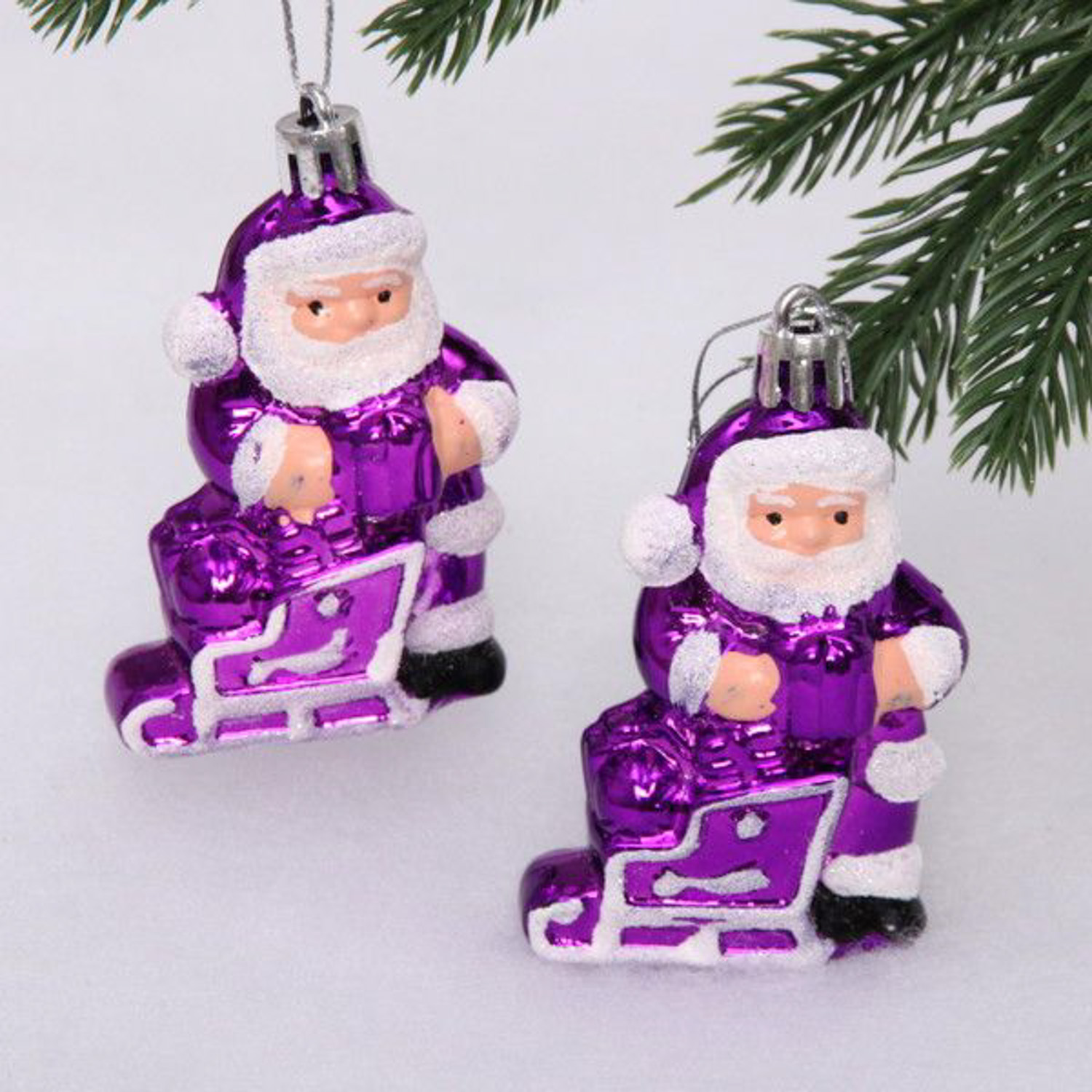 Набор елочных игрушки "Дед Мороз с подарком" 6,5 см, 2 шт., фиолетовый