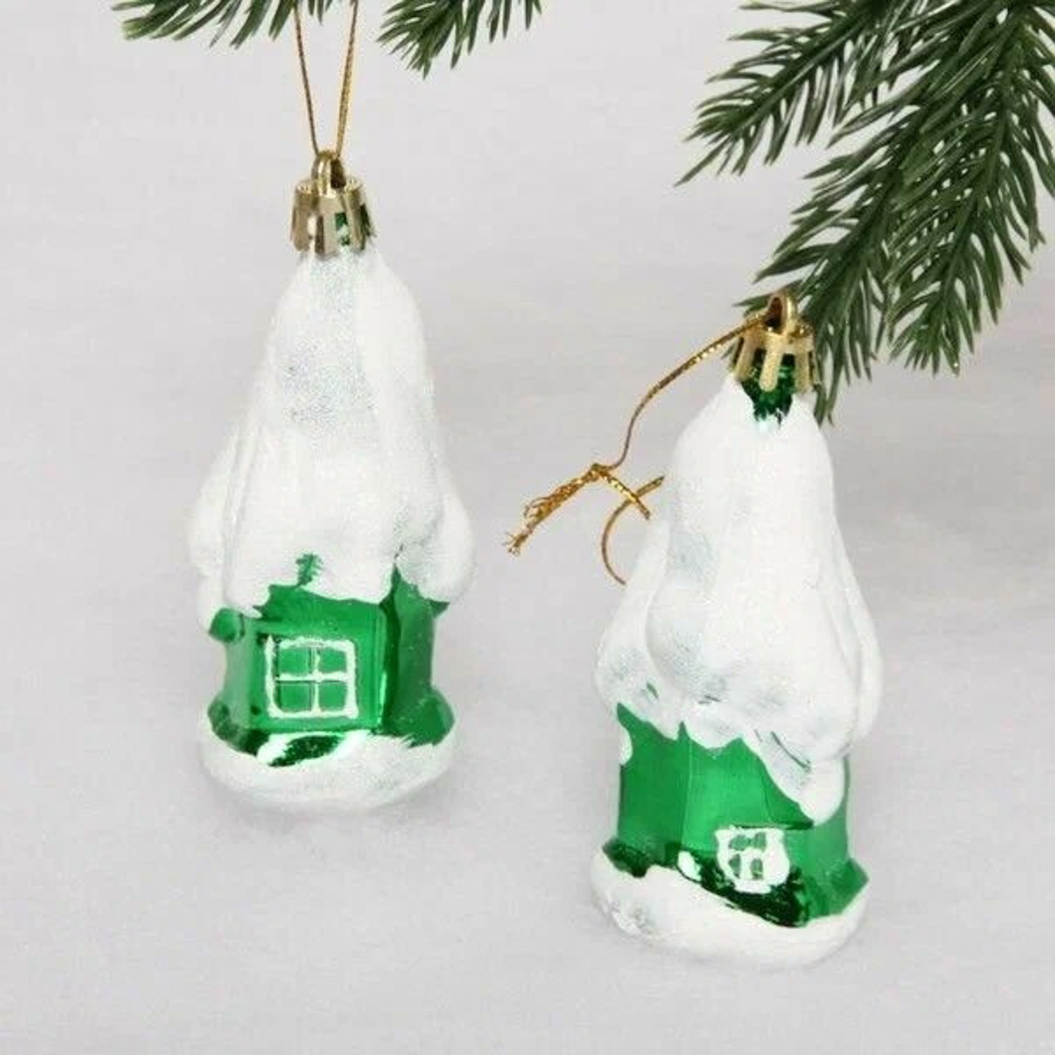 Елочные игрушки "Загадочный домик" 9 см (набор 2 шт), Зеленый
