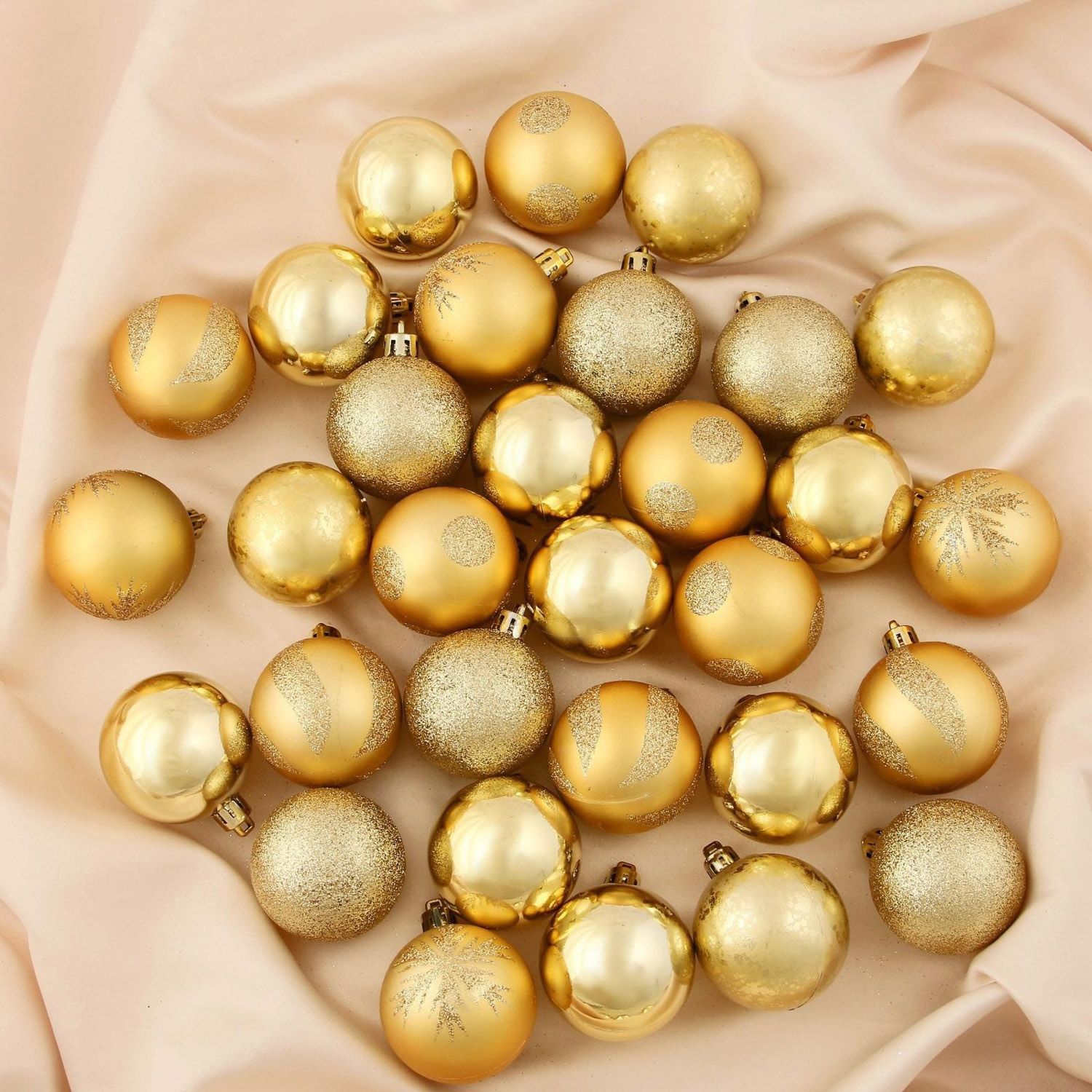 Набор шаров пластик d-5 см, 34 шт "Ёлочка - снежинки и горошины" золото 4191829