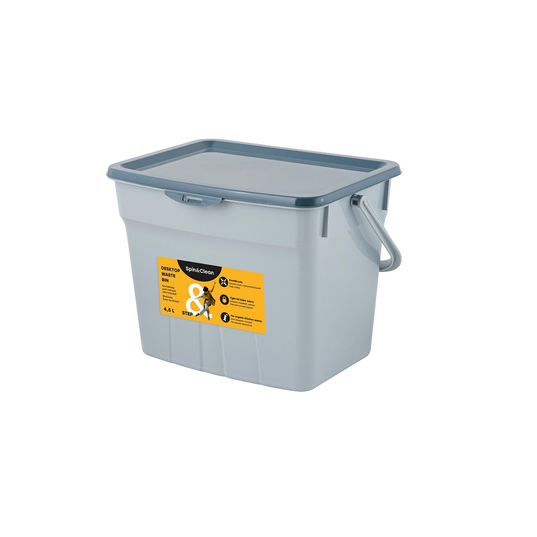 Контейнер д/мусора пластм. с откидной крышкой 4,5л SC480211025 ("Spin Clean") *1/14