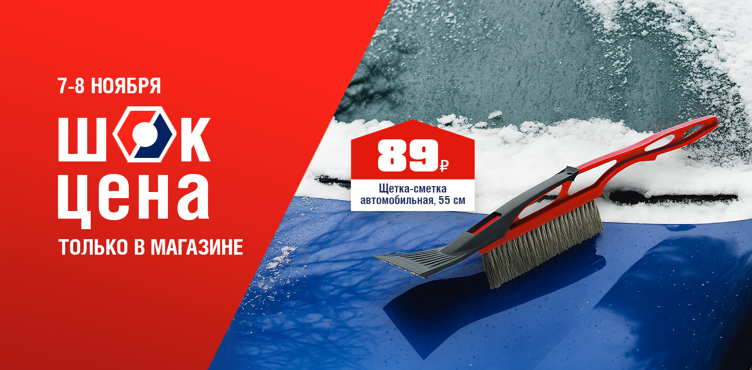 Щетка-сметка со скребком — надежное решение для быстрой очистки автомобиля от снега и льда. Удобная длина 55 см позволяет легко убрать снег с крыши и капота, а усиленный скребок эффективно удаляет наледь со стекол. Морозостойкий пластик сохраняет прочность в любую погоду, делая щетку долговечным спутником в зимние месяцы. 7 и 8 ноября в розничных магазинах ДомоСтрой не пропустите ШОК-цену: