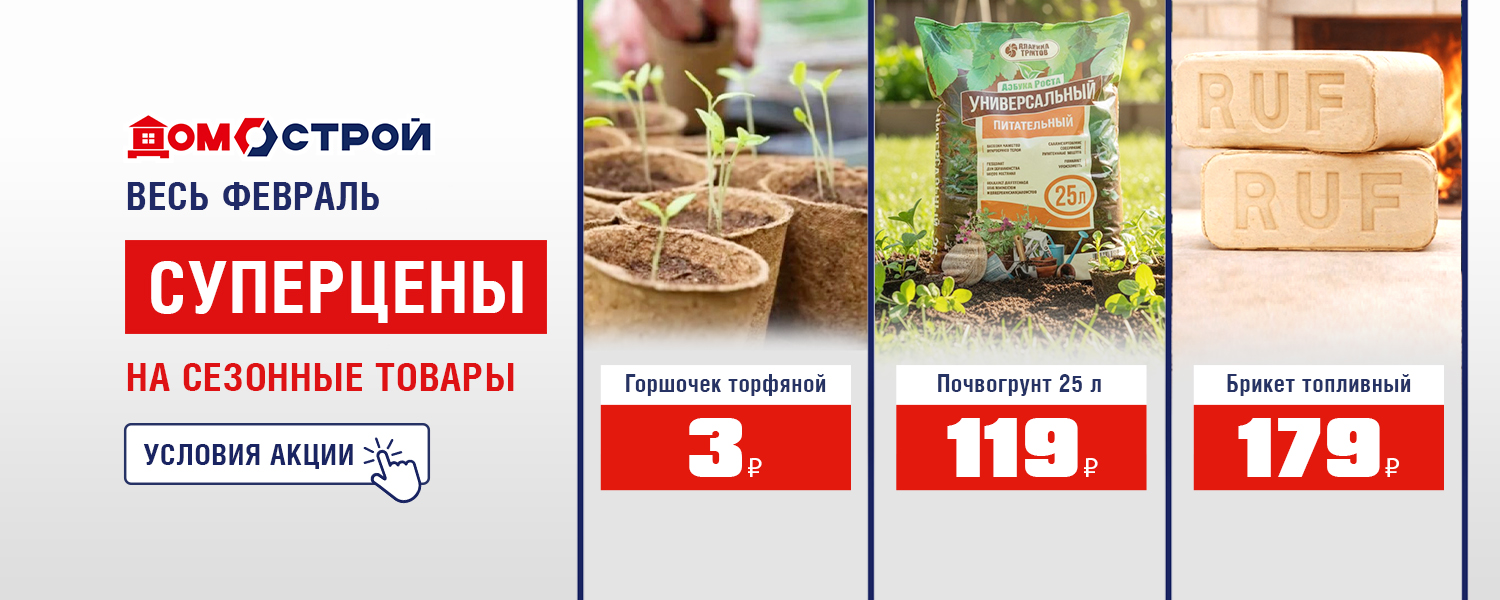Только до 28 февраля в ДомоСтрой суперцены на сезонные товары для дачи и сада! Успейте заказать на сайте или приобрести в магазине.